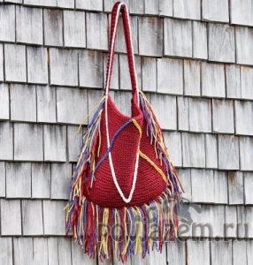Интересная сумка спицами Сумка спицами Интересная сумка спицами украшенная бахромой. Эта очаровательная и довольно красивая сумка простая в исполнении, поэтому с ней вполне может справиться даже начинающий. Вязаная сумка спицами, описание: Размер сумки без ручек и бахромы составляет 52см. х 40см. Для ее вязания берем 550г. бордовой пряжи (100% мериносовая шерсть, 100м./50г.), также по 50г. […]